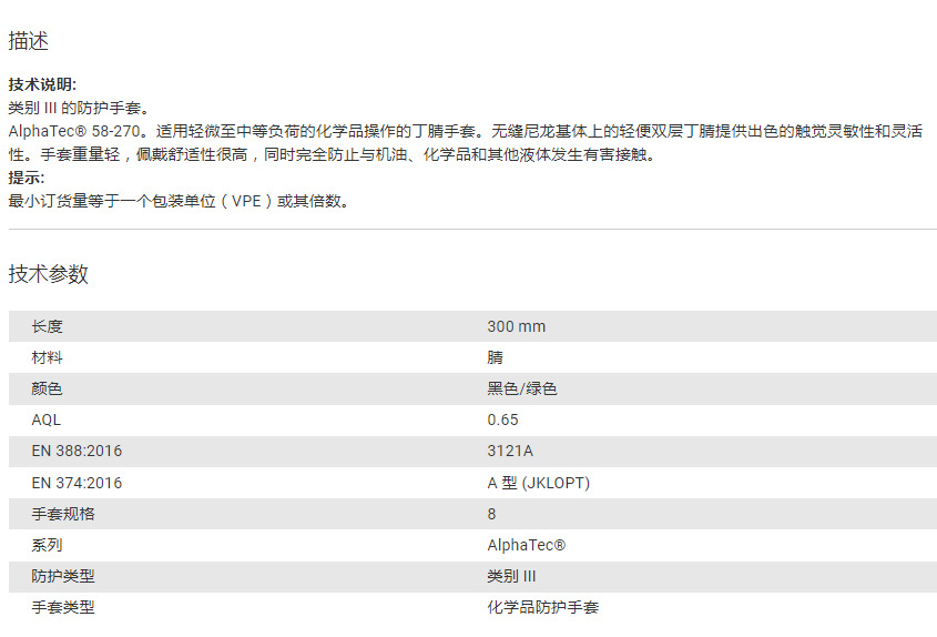 产品详情:德国霍夫曼(@@@)化学防护手套(副)0947598