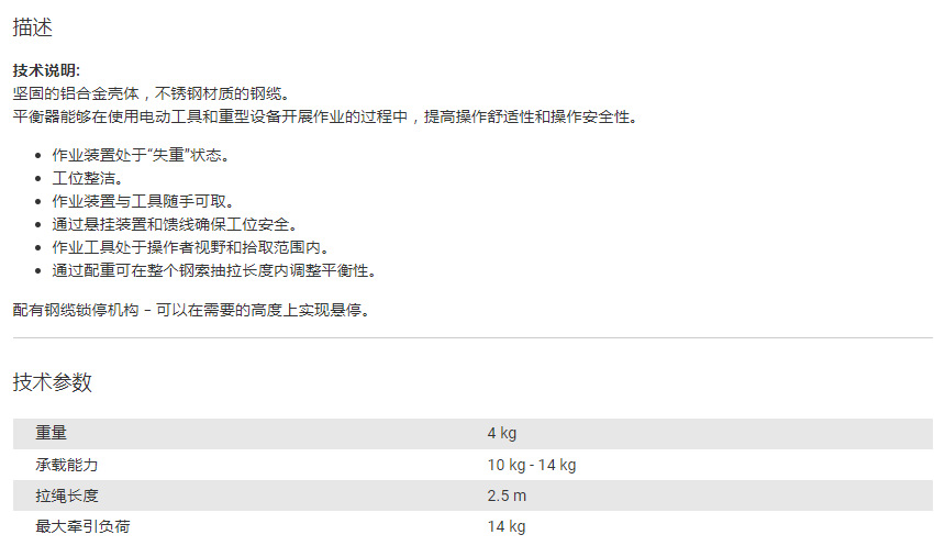 产品详情:德国霍夫曼(Hoffmann)Chicago Pneumatic平衡器07929814公斤
