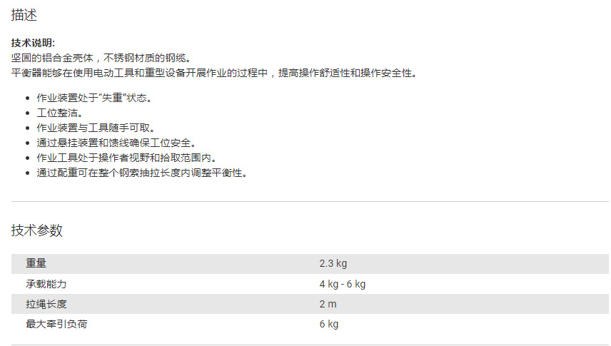 产品详情:德国霍夫曼(Hoffmann)Chicago Pneumatic平衡器079298 6kg