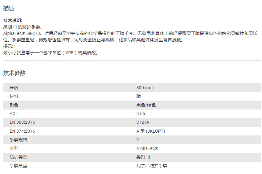 产品详情:德国霍夫曼(@@@)化学防护手套(副)0947599