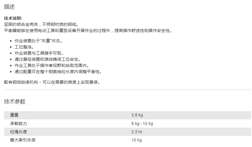 产品详情:德国霍夫曼(Hoffmann)Chicago Pneumatic平衡器07929810公斤